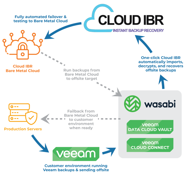 A simple, cost-effective, and fully-automated Disaster Recovery SaaS platform for your immutable Veeam backups. With on-demand Bare Metal Cloud infrastructure you'll respond and recover faster from disasters and easily perform fully automated cybersecurity compliance testing.